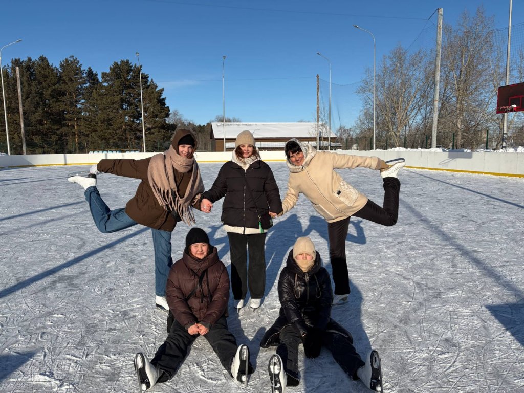 Қысқы демалыс кезінде 3Д-23 тобының студенттері уақытты белсенді әрі тамаша көңіл-күймен өткізді — жігіттер мен қыздар қалалық катокқа барды.