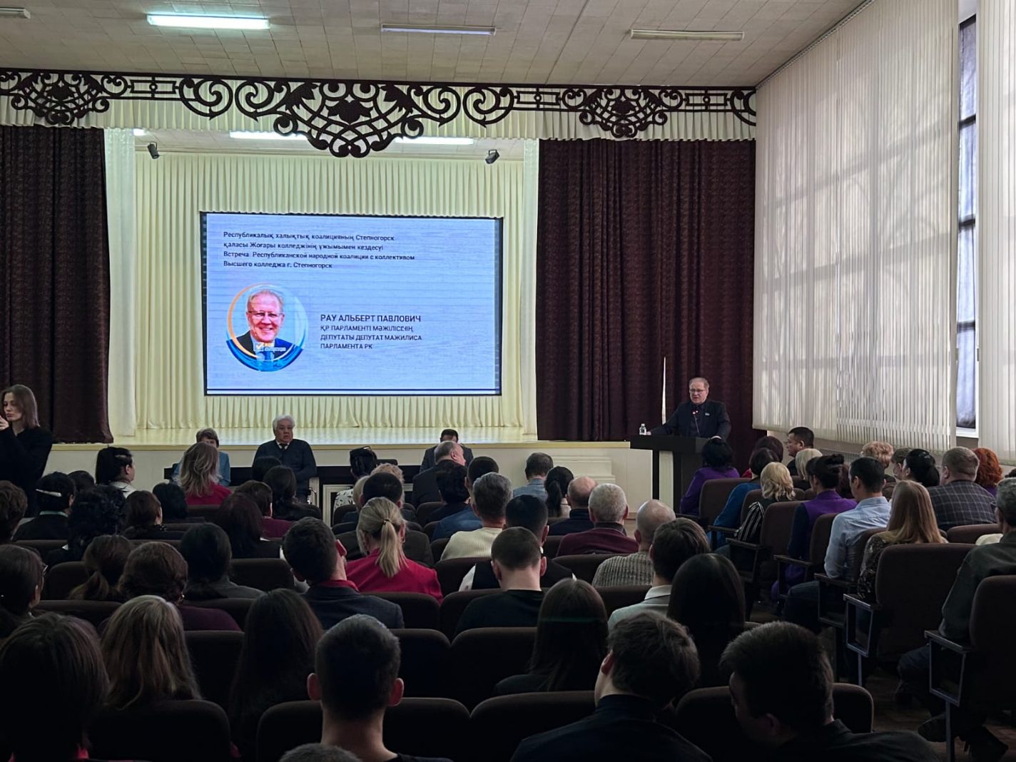 Бүгін Республикалық халықтық коалицияның Степногорск қаласының жоғары колледжі ұжымымен кездесуі өтті. Жиында ҚР Парламенті Мәжілісінің депутаты А.П. Рау, Ақмола облыстық мәслихатының депутаты, экономика және бюджет мәселелері жөніндегі тұрақты комиссия төрағасы М.С. Койшибаев, Степногорск қалалық мәслихатының төрағасы О.А. Джагпаров, Степногорск қаласының жоғары колледжінің басшысы Е.В. Тарасова және осы колледждің оқытушысы Г.Е. Умарова спикер ретінде сөз сөйледі.